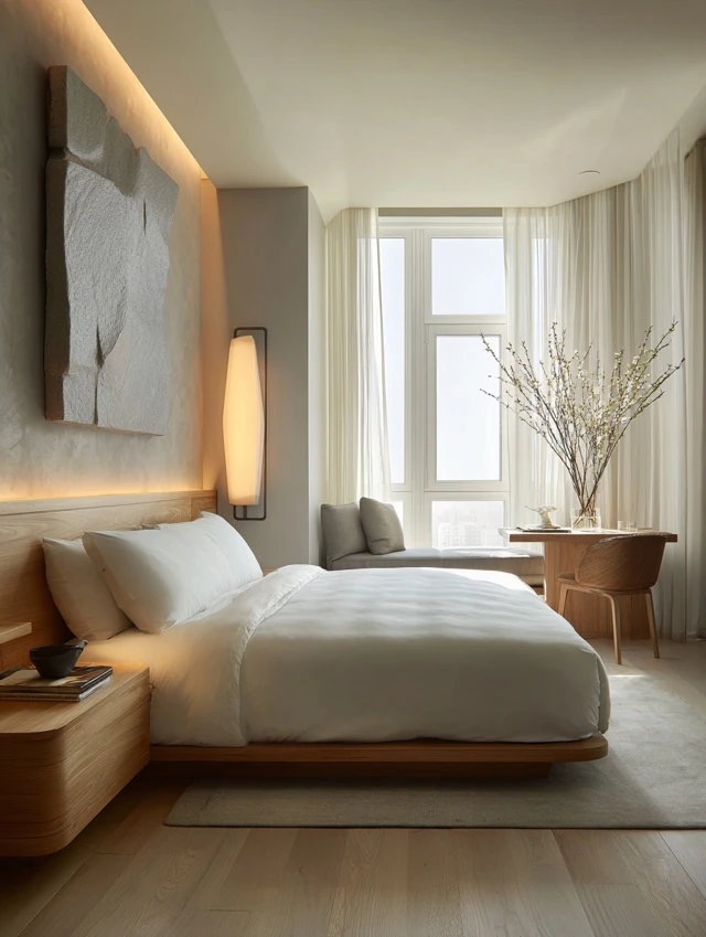 Minimalist guest bedrooms prioritize clarity.
